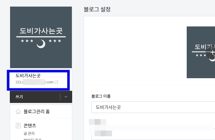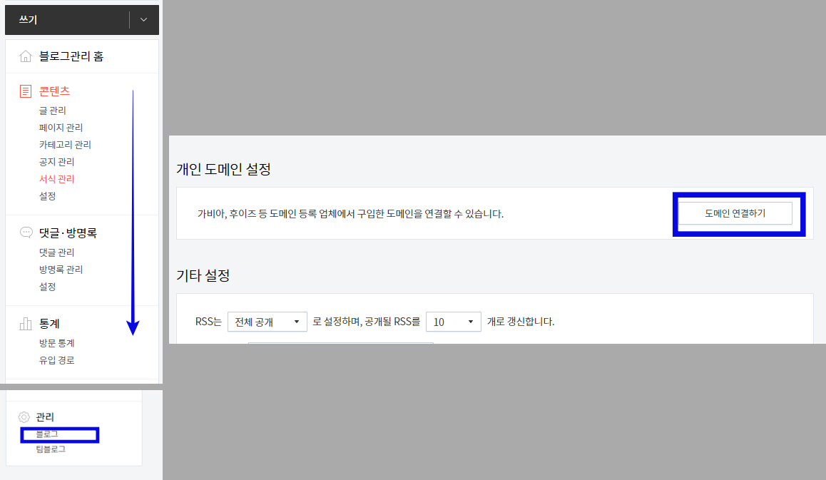 4. 블로그 홈 > 관리 > 블로그 > 도메인 연결하기