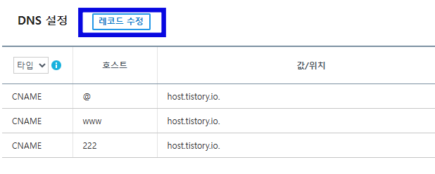 DNS 설정에서 레코드 수정을 클릭하면 레코드 추가가 가능한데요.